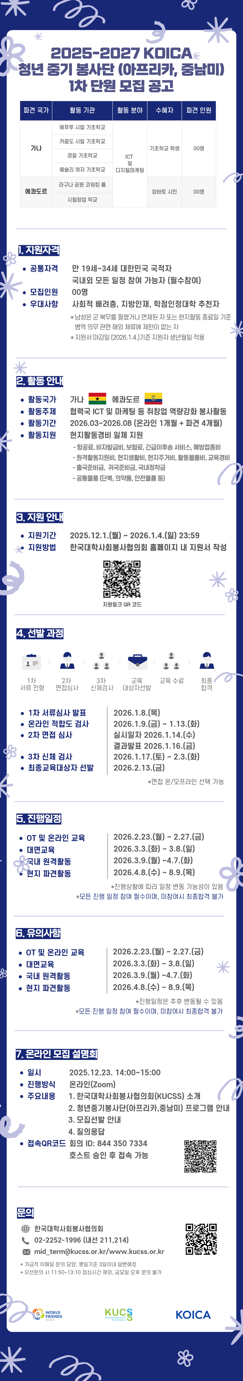붙임 1. (지원자용) 2025-2027 KOICA-청년중기봉사단(아프리카중남미) 1차 파견 단원 모집선발 안내서