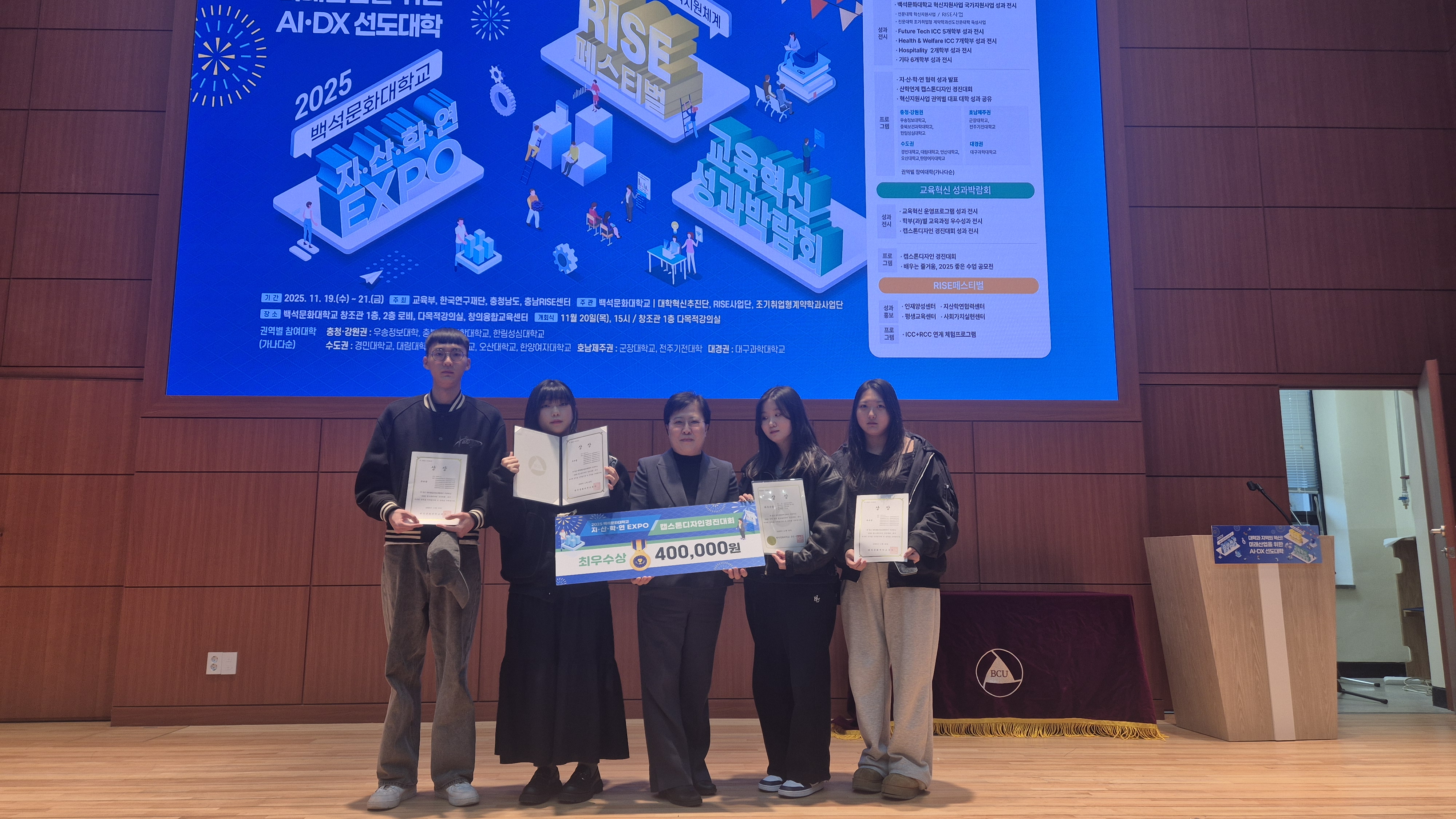 백석문화대학교 산학협력단에서 주관한 「2025년 산학연계 캡스톤디자인 경진대회」에서 최우수상을 수상하였습니다.