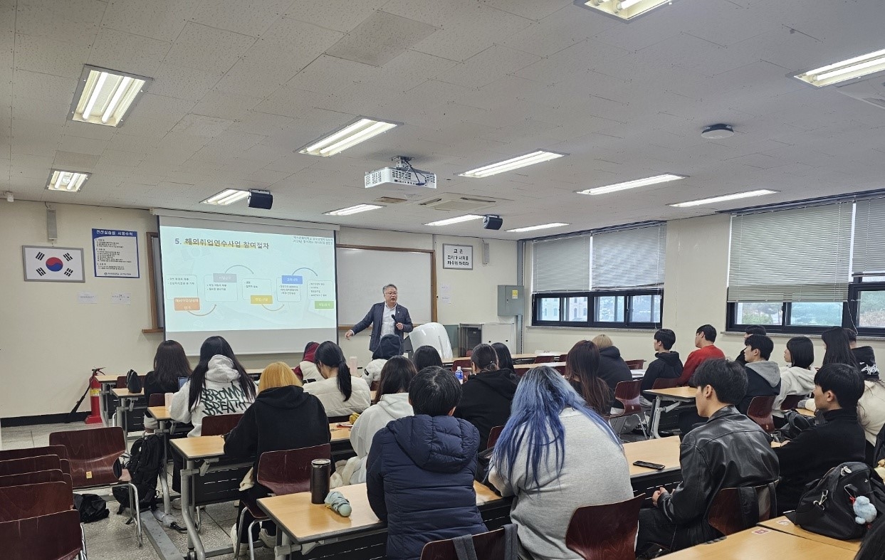 2023년 12월 뉴질랜드로의 첫 해외취업생을 시작으로 토탈뷰티학과 예비졸업생의 해외취업에 관한 설명회가 있었습니다.