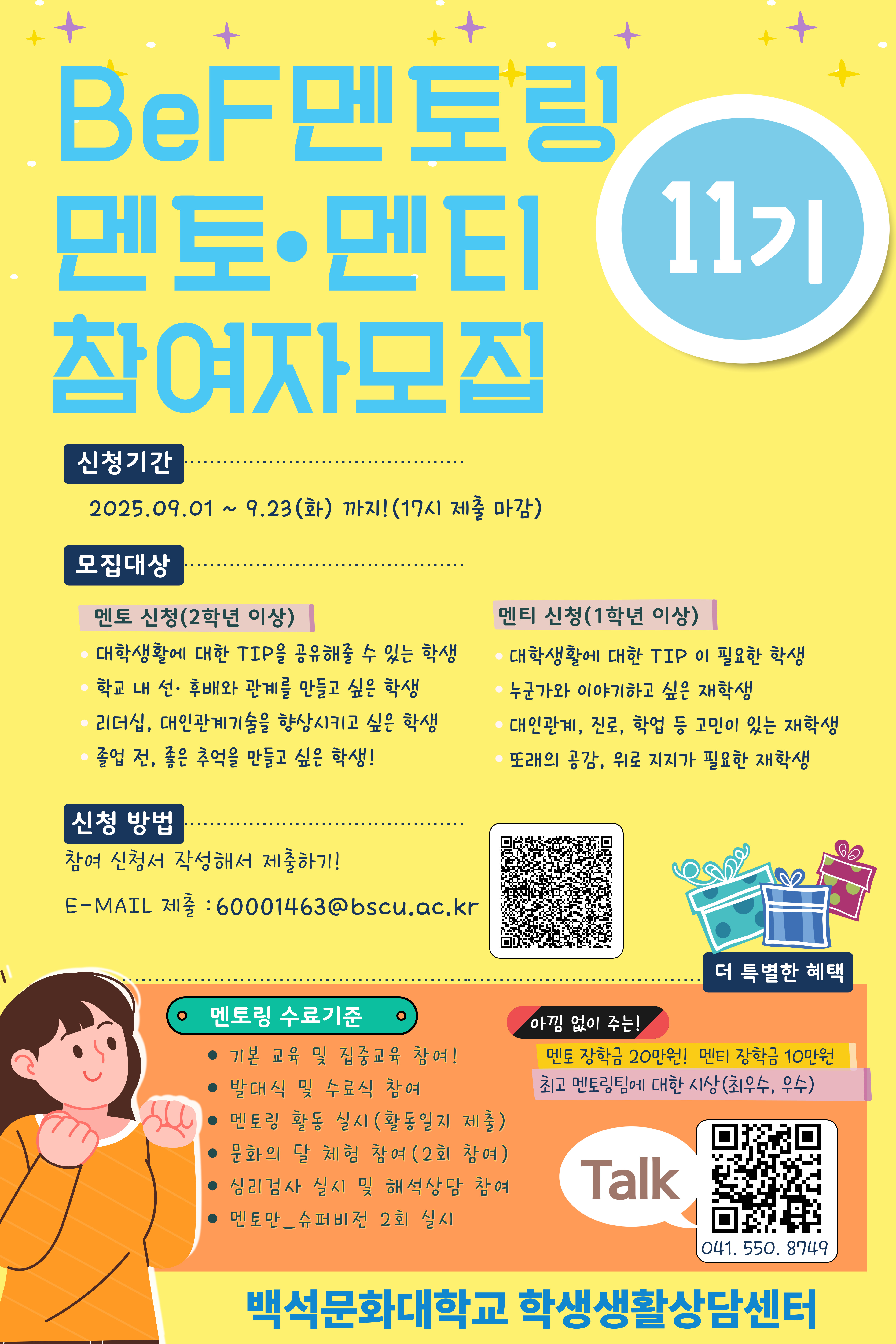 카카오톡 : 백석문화대학교 학생생활상담센터