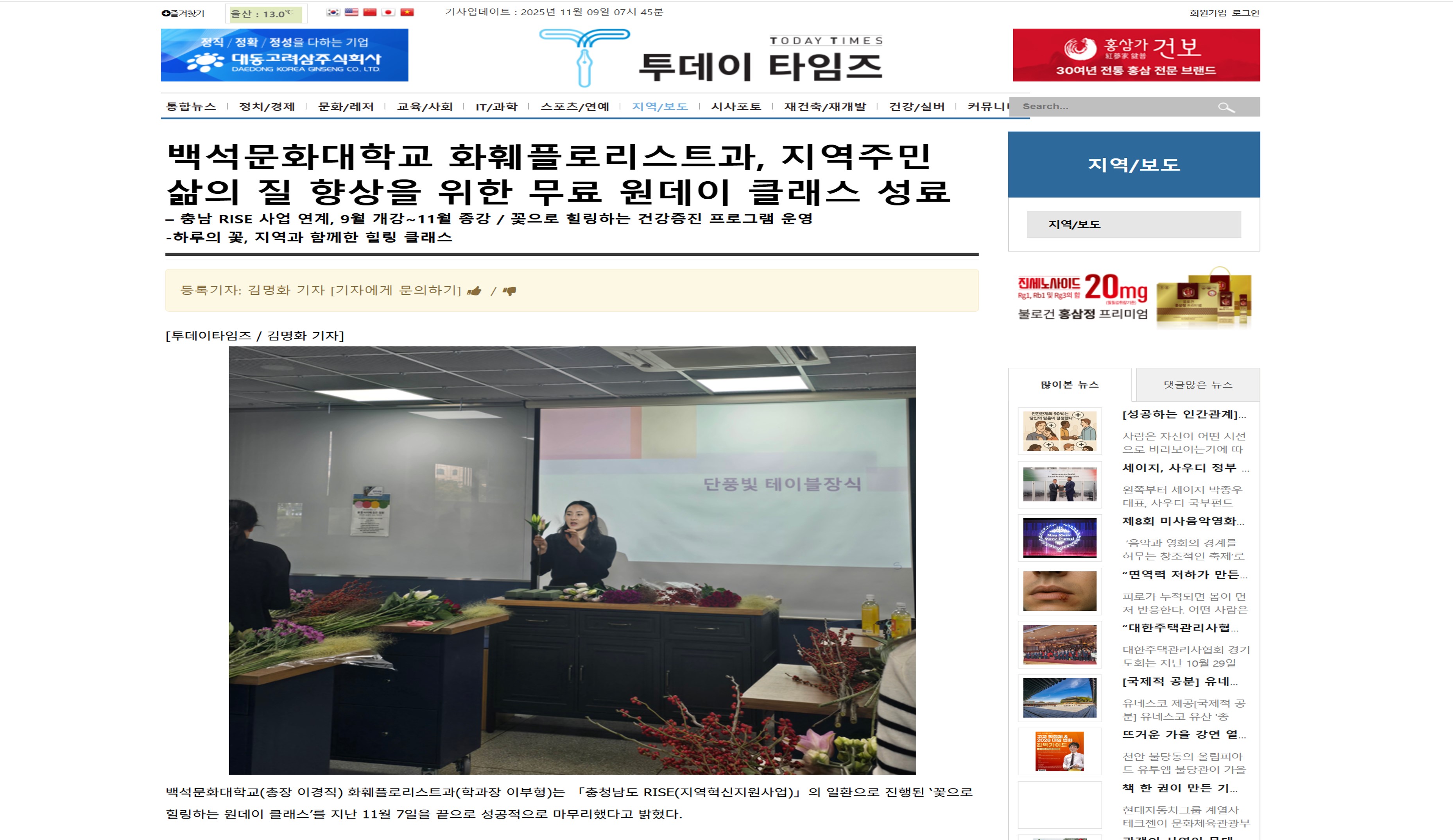 2025 충남RISE 사업 화훼플로리스트과 원데이클래스 프로그램 관련 기사