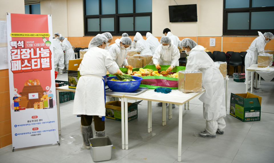 백석문화대 RISE사업단 사회가치실현센터는 지난 12일 교내 창조관 1층 식당에서 지역 취약계층을 위한 '백석김장나눔 페스티벌'을 개최했다.