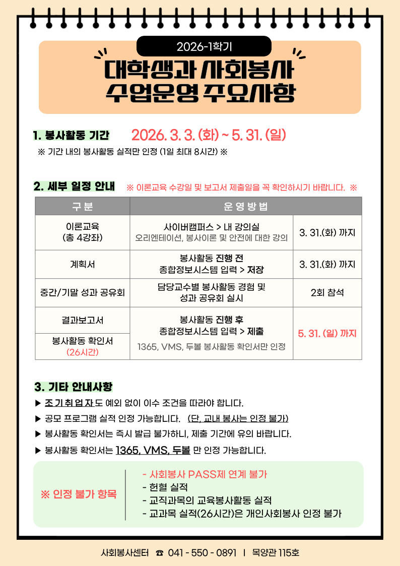3. 사회봉사 교과목 수업운영 주요사항을 반드시 확인하기 바랍니다.