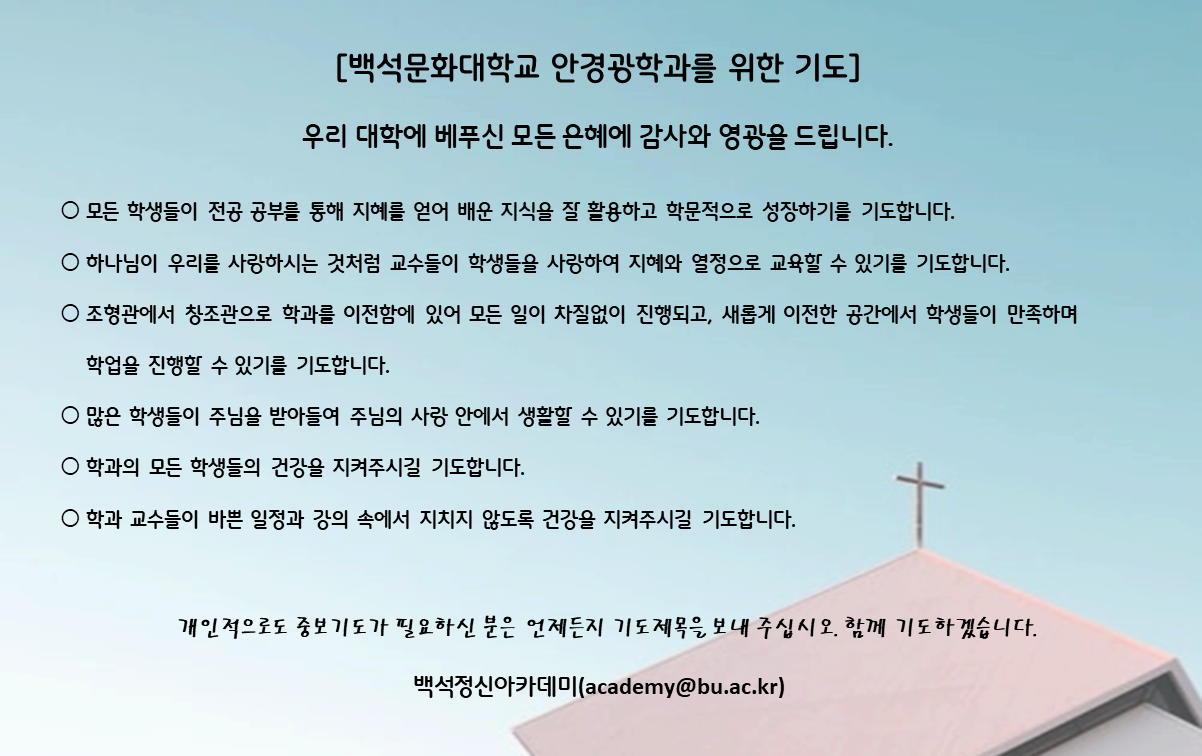 우리대학과 학부(과)를 위한 기도입니다. 함께 기도해 주세요.