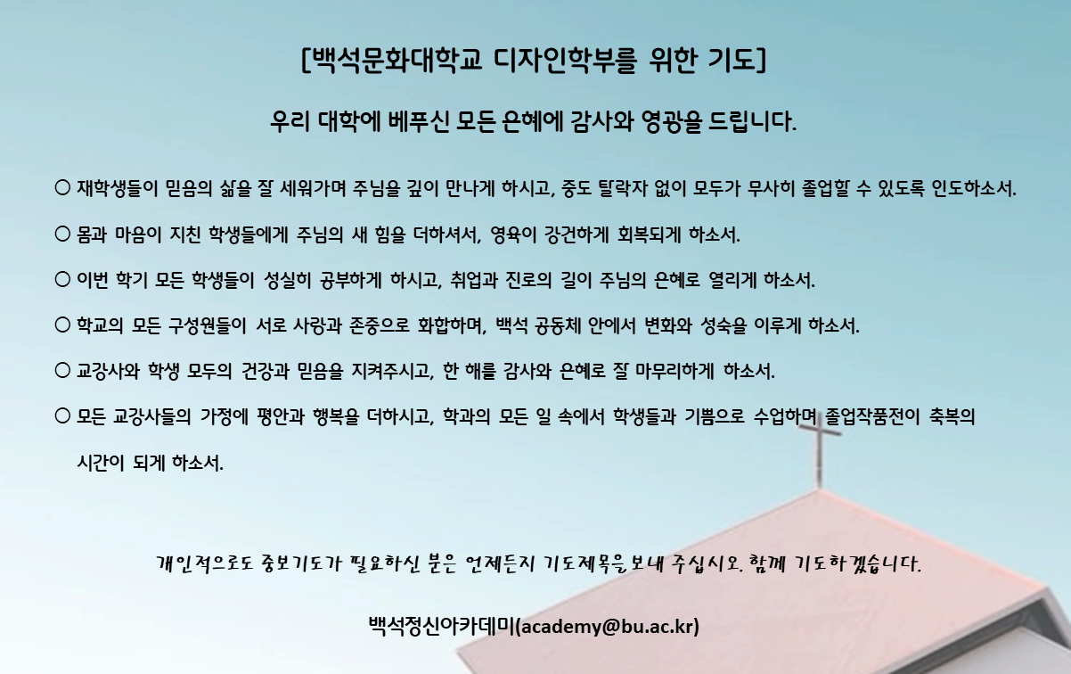 우리 대학과 학부(과)를 위한 기도입니다. 함께 기도해 주세요.