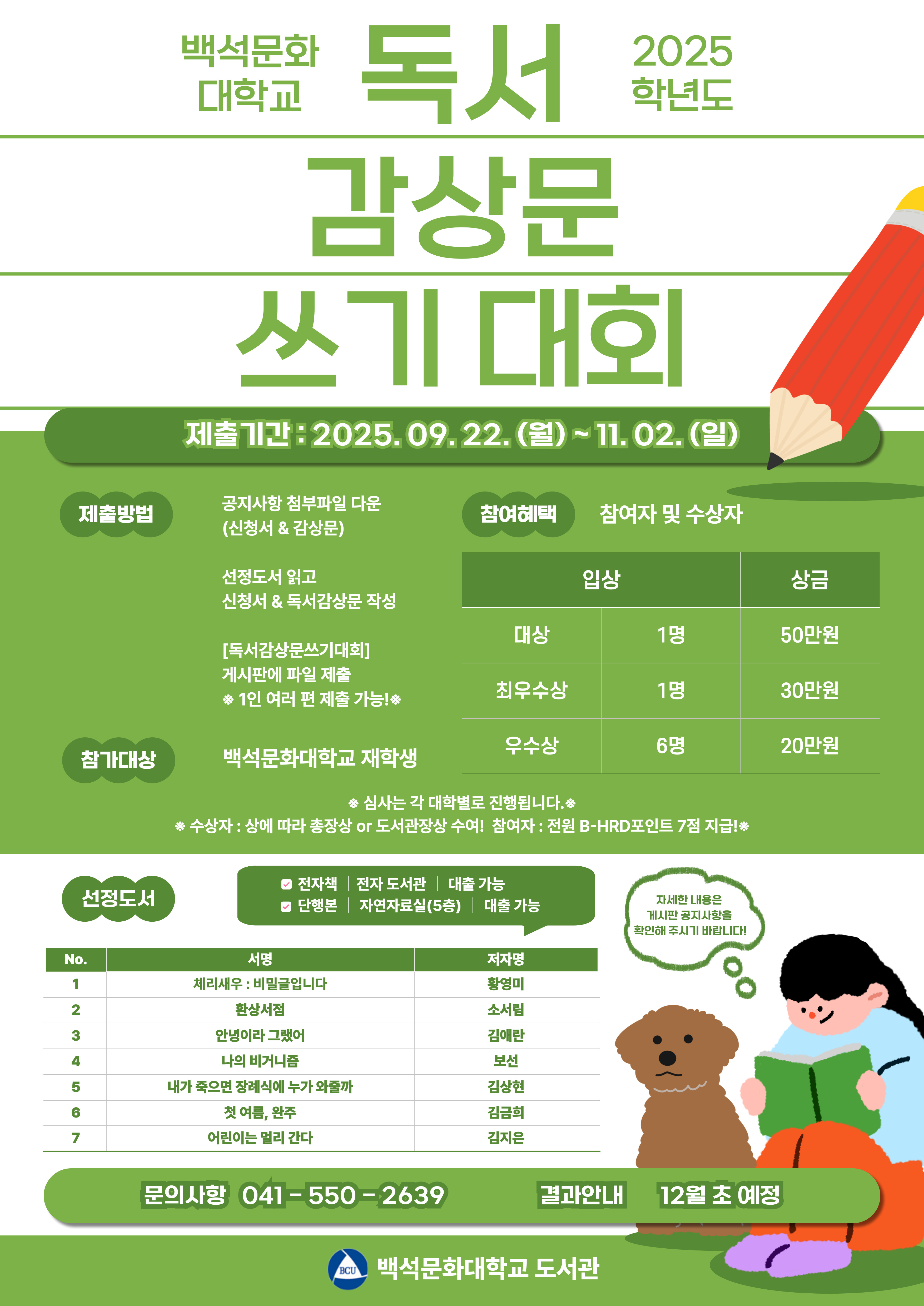 [도서관] 2025 독서감상문쓰기대회 안내 [원고마감 임박 ~11.2.]