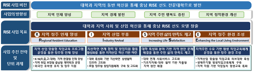 지역혁신중심 대학지원체제(RISE)사업 목표 우리 대학의 특성화분야는 컬처서비스와 휴먼서비스 분야로 4차 산업혁명 대비 미래유망 컬처&휴먼 서비스 산업 전문 직업인재 양성함 추진전략